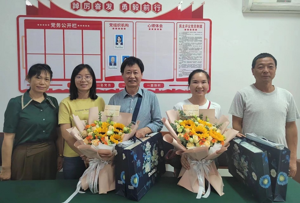 營(yíng)業(yè)中心班子各自回顧起與兩位退休職工一起工作的美好時(shí)光,大家暢所欲言,暖心的話語(yǔ),觸動(dòng)著彼此,期盼退休后繼續(xù)關(guān)心、幫助、支持公交事業(yè)的發(fā)展,?!盎丶摇笨纯础kS后為姚開忠、胡玲玲獻(xiàn)上鮮花并合影留念。