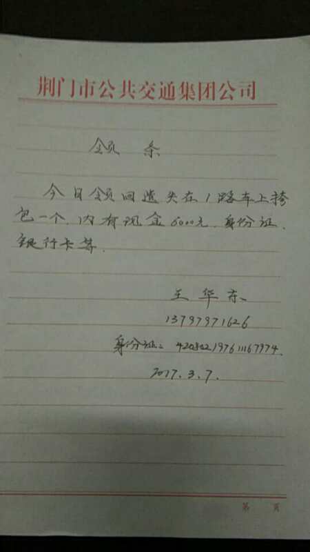 3月7日,一名小女孩在乘坐1路車時,在車上拾到一個皮包,并主動交給駕駛員,交由調(diào)度室發(fā)現(xiàn)內(nèi)有現(xiàn)金6000余元及各種卡證。為這個拾金不昧的小女孩點贊,幫助失主尋回遺失財物!