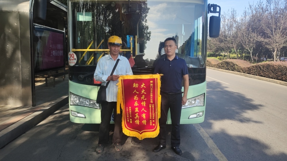 9月4日,市民賀先生拿著一副寫有“拾金不昧 品德高尚”的錦旗交給市公交集團二公司相關(guān)負責(zé)人手上,希望轉(zhuǎn)交給3路李學(xué)鋒師傅,言語間滿是感激。