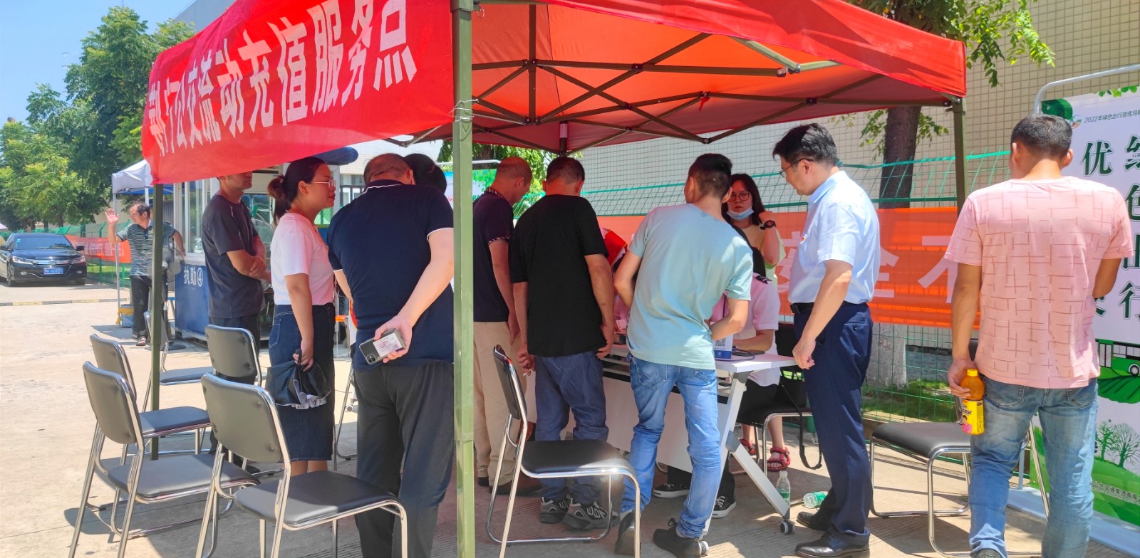 當(dāng)天中午12時(shí),正是一天最炎熱的時(shí)候,也是廠區(qū)職工午休時(shí)間。選在這個(gè)時(shí)間段開展流動服務(wù),是可以最大程度方便殘疾工友,不會耽擱到他們的生產(chǎn)作業(yè),更不會影響他們正常休息,服務(wù)點(diǎn)就設(shè)在他們下班的必經(jīng)路。